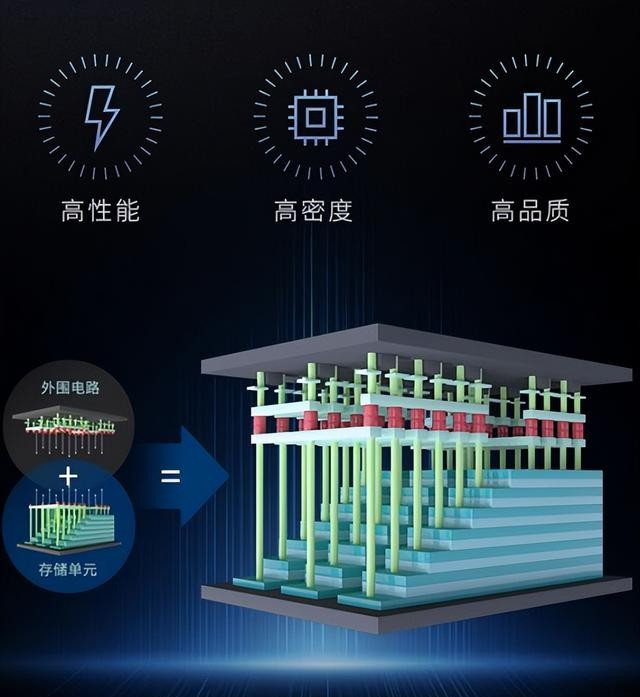 靠着这种在两个独立晶圆上分别加工外围电路和内存单元,再利用混合键合技术重新堆叠连接在一起的新技术。